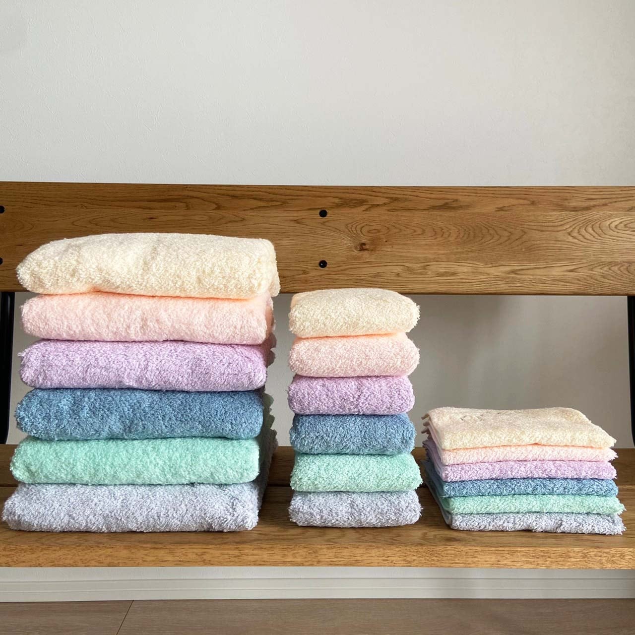 タオルはウォッシュタオル・フェイスタオル・バスタオルの3サイズをご用意しています。
