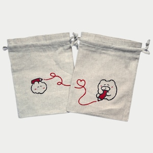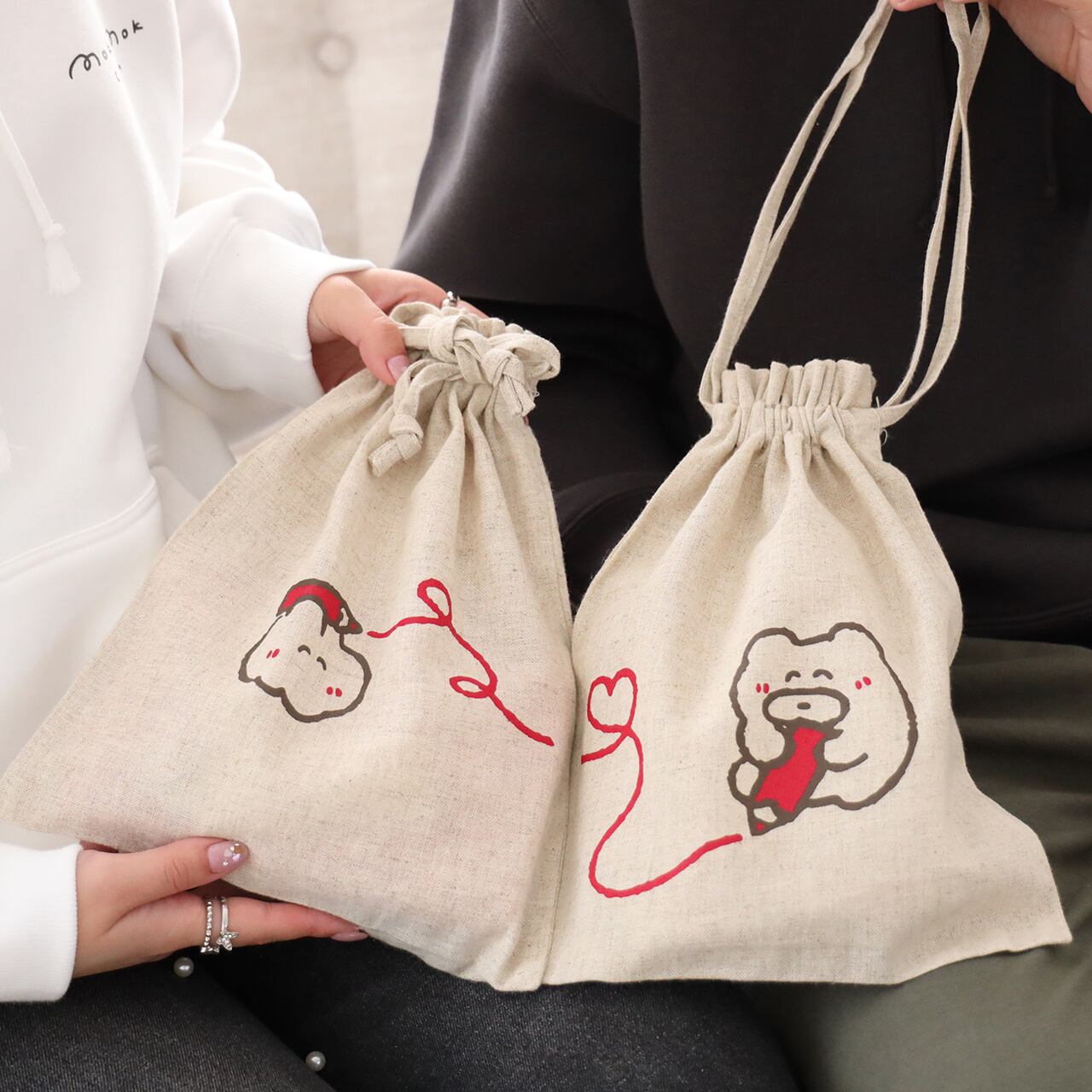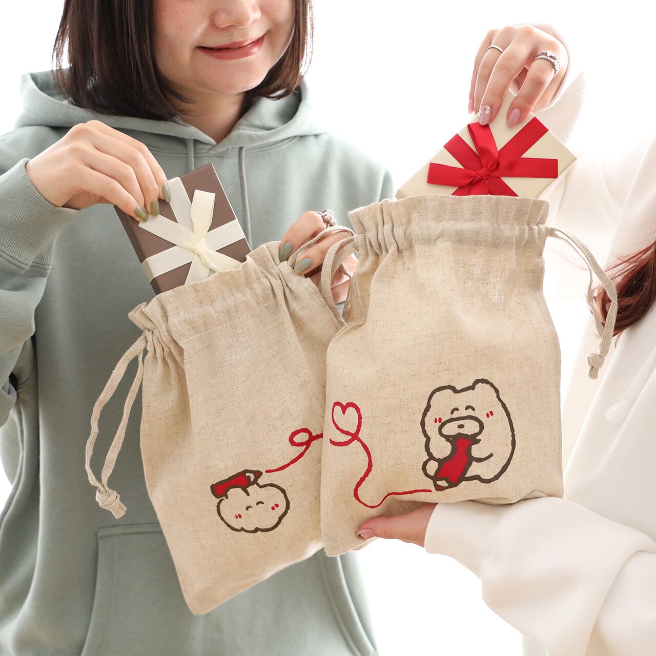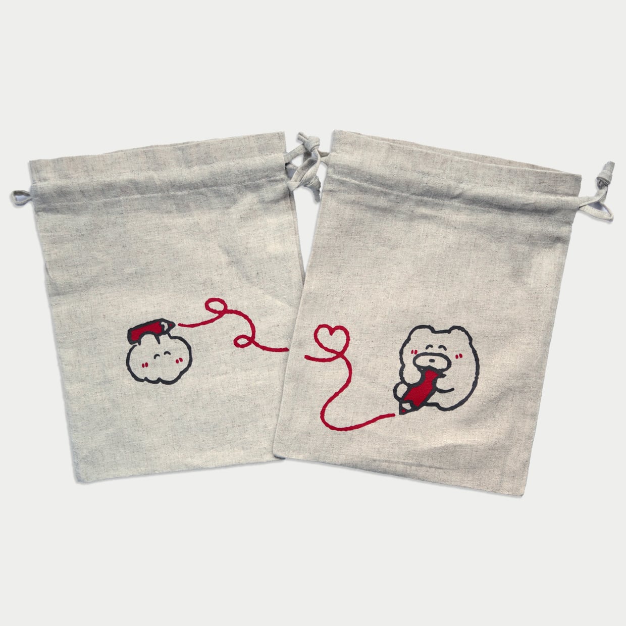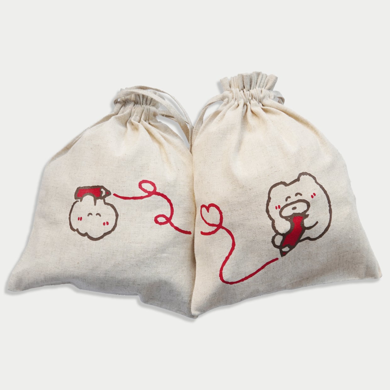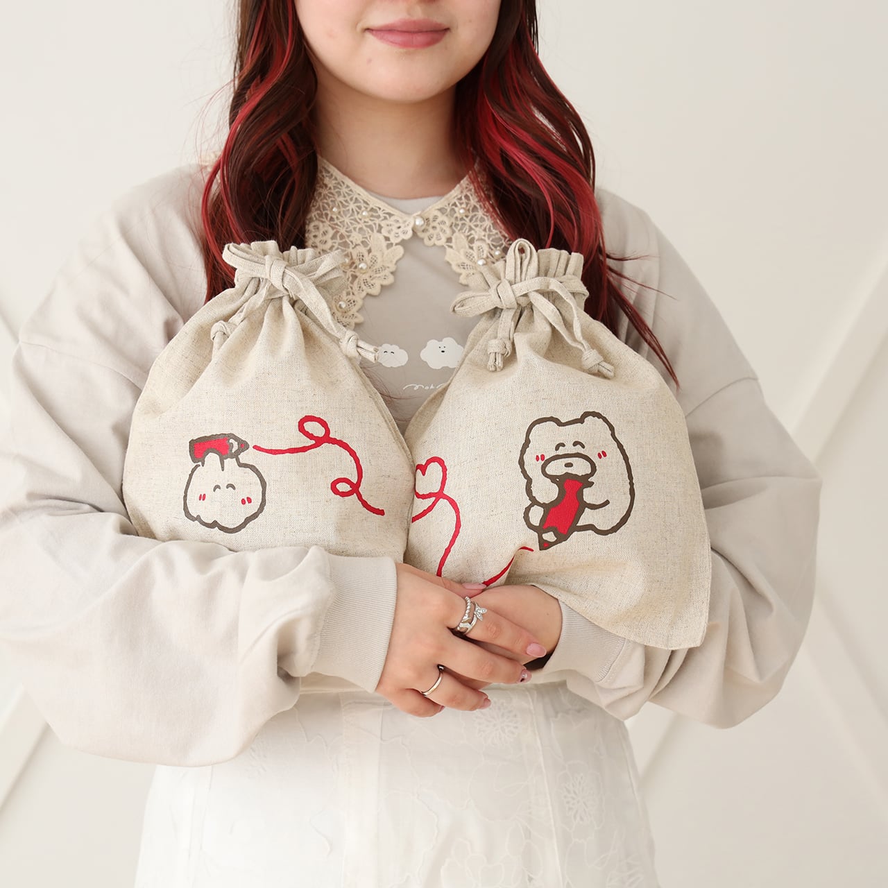 なでウサ&くまのペアつながる巾着ポーチ(MK-434)