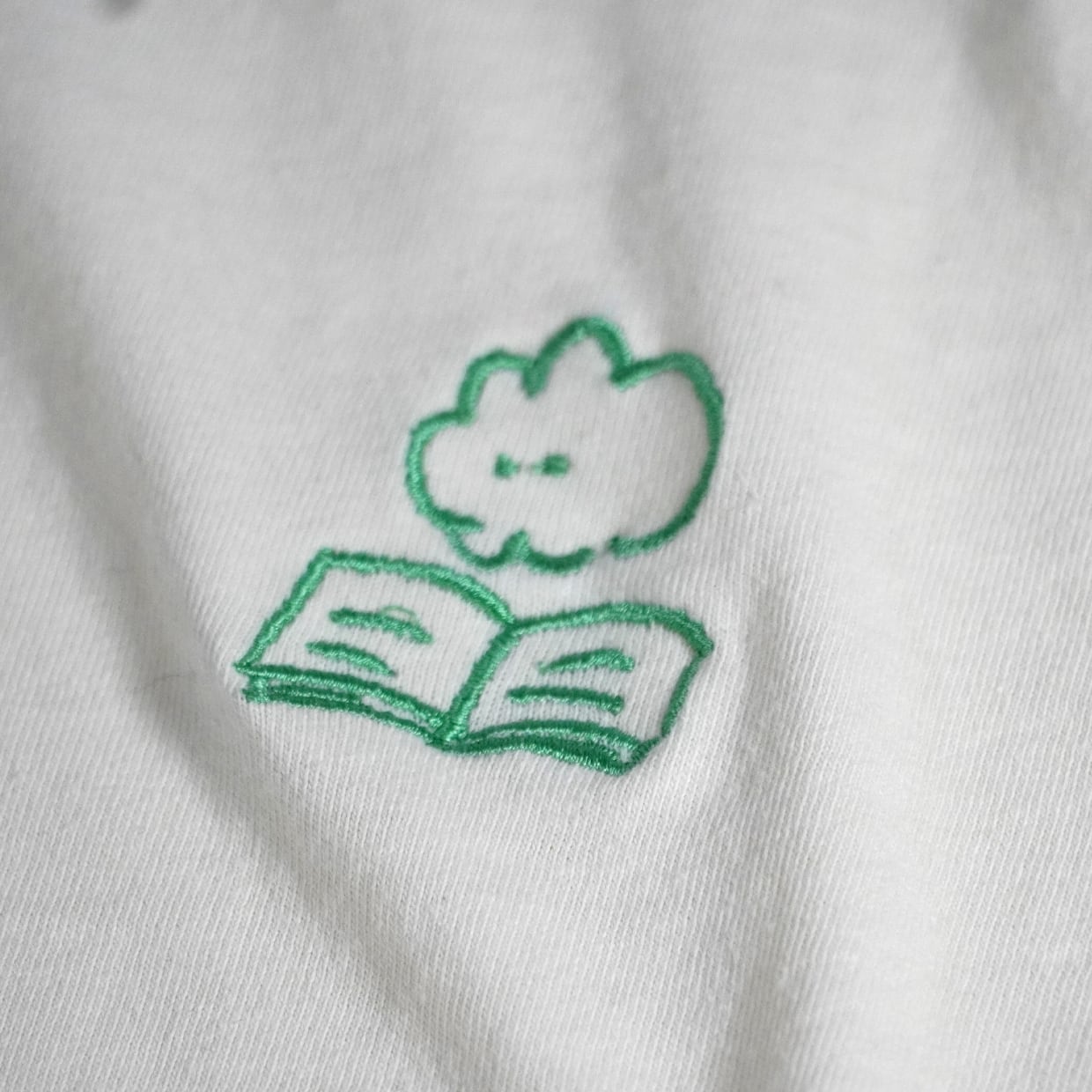 もくもくちゃんのゆる〜いタッチの個性的な線画が散りばめられた刺繍ロンT。