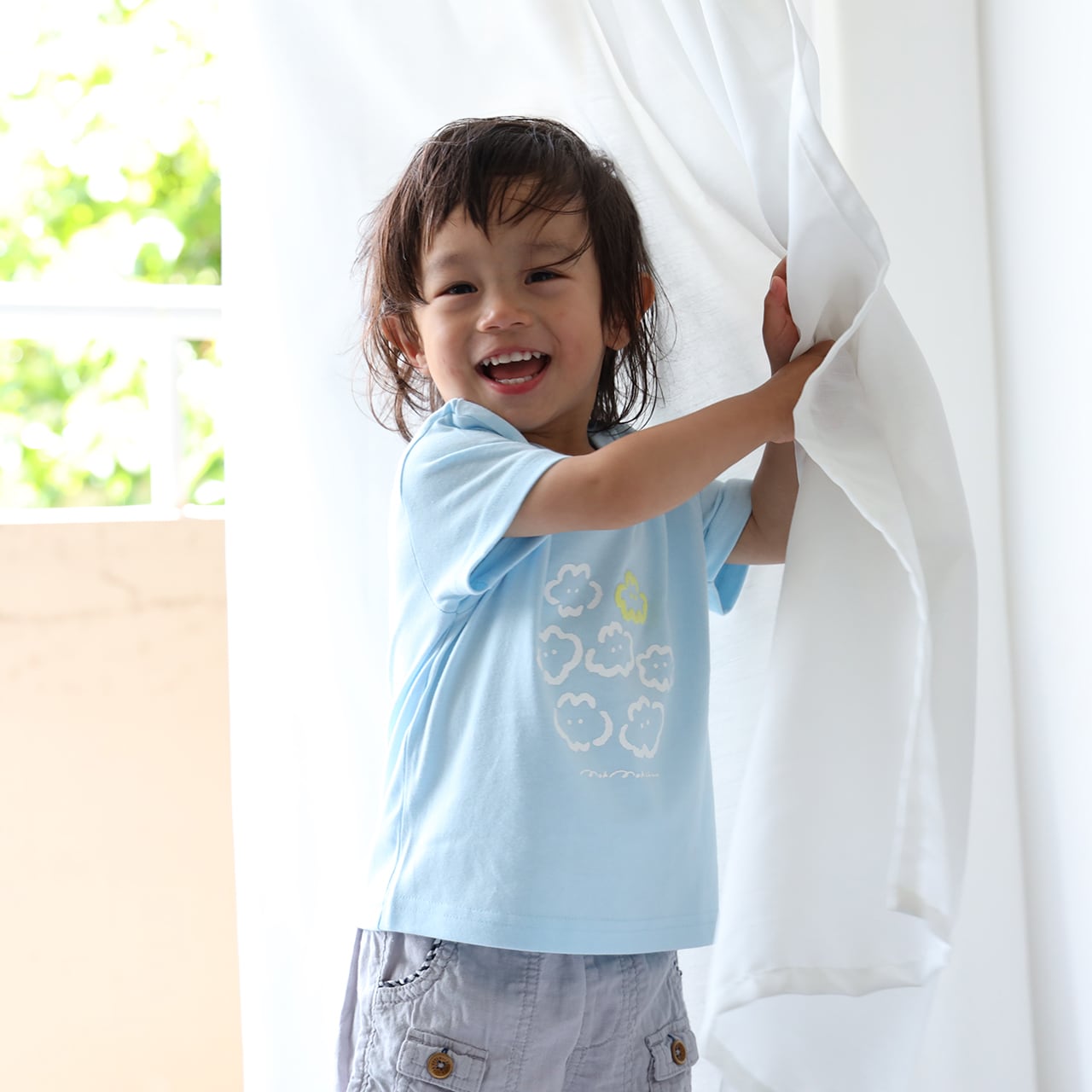 度重なる洗濯でもよれにくい、こどもたちの笑顔を支える一枚です。