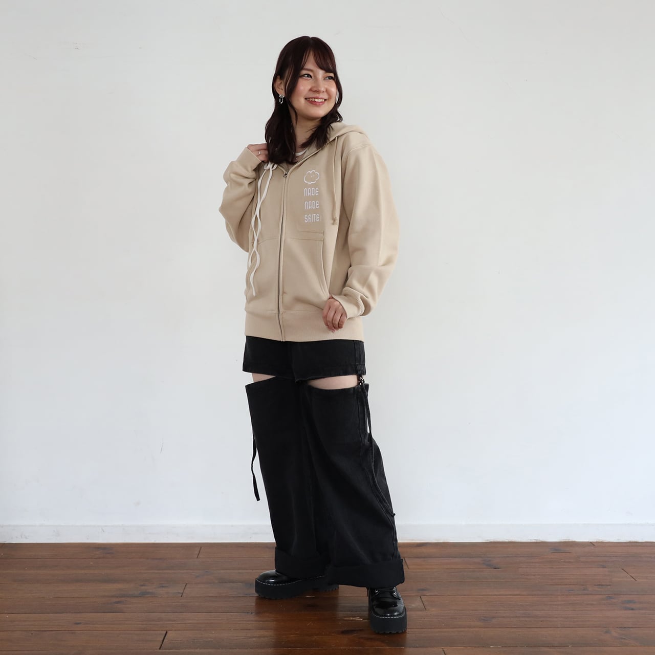 裏起毛NADENADESHITEzipパーカ/ベージュ(MK-546)