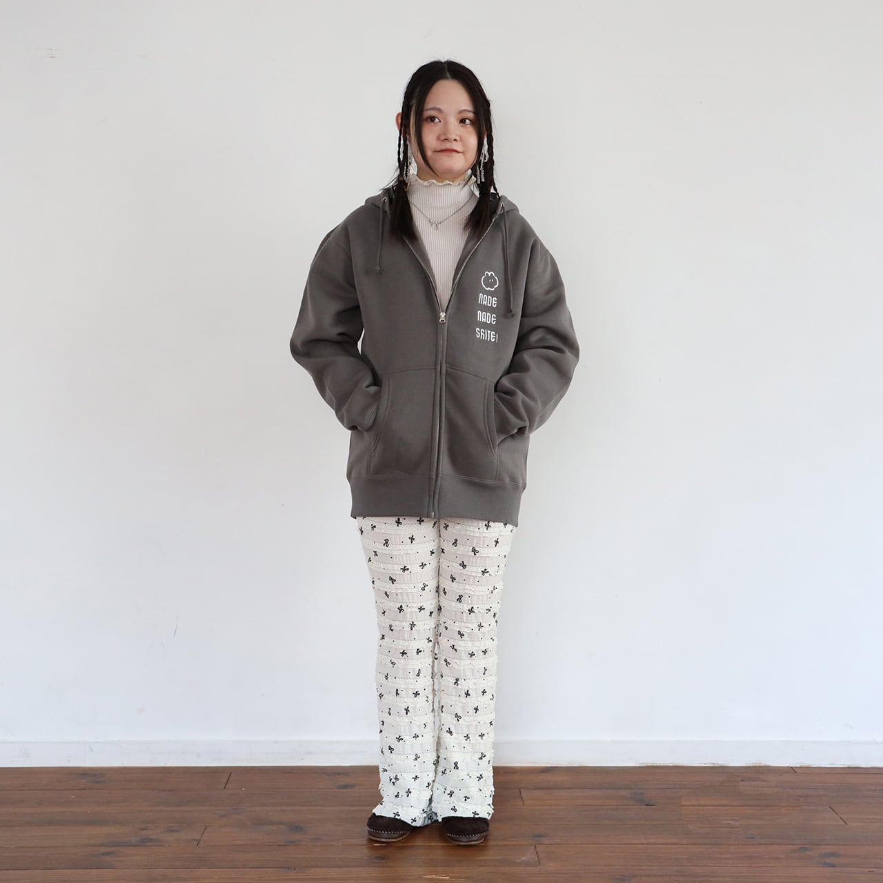 裏起毛NADENADESHITEzipパーカ/セメント(MK-546)